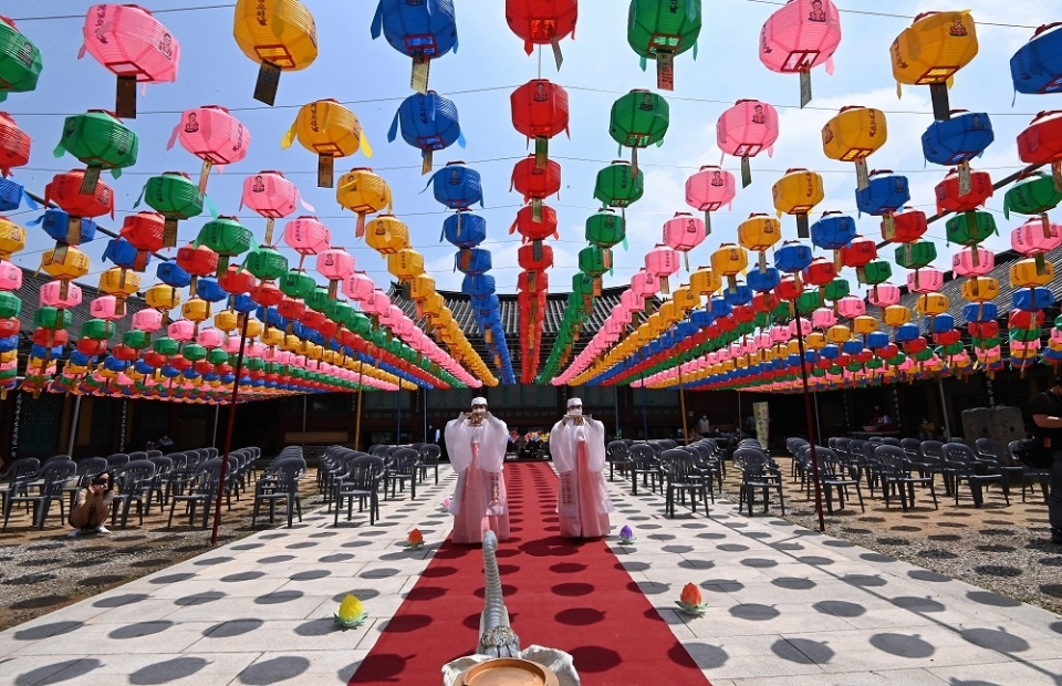 대표적인 행사 중 하나는"연등"입니다. 연등은 부처님의 생일을 기리기 위해 수많은 등불을 밝히는 의식으로, 사찰이나 절에서 열리는 행사입니다. 이날에는 수많은 등불이 사찰내외에 불도를 밝히며, 불교신자들과 함께 부처님의 가르침을 기리는 기도와 명상을 실시합니다. 연 등은 불교의 신비로운 분위기를 조성하며, 밝게 빛나는 등불들이 아름다운 풍경을 만들어냅니다.
