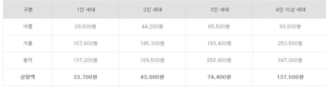 한 가지 중요한 점은 위금액은 2022년도 총지원금으로 월별 지원금이 아닙니다. 또한 겨울 바우처 일부를 여름 바우처로 당겨 쓸 수 있으며 여름 바우처 잔액은 겨울 바우처로 사용이 가능합니다. 가장 하단 부분의 상향된 지원 금액은 22년 한시적인 지급으로 7월 1일부터 적용되고 있습니다.