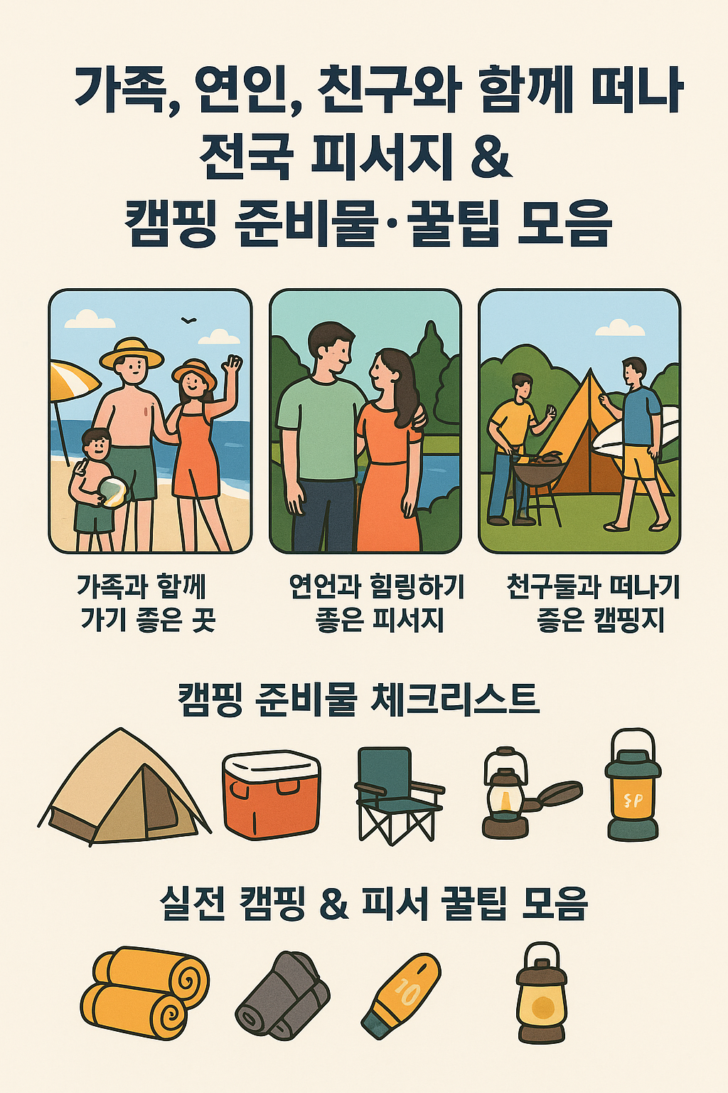 이 글 하나면 전국 인기 피서지 추천부터 실전 캠핑 준비물과 꿀팁까지 한 번에 정리할 수 있어요!