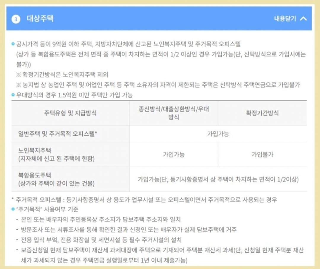 주택연금 신청 조건