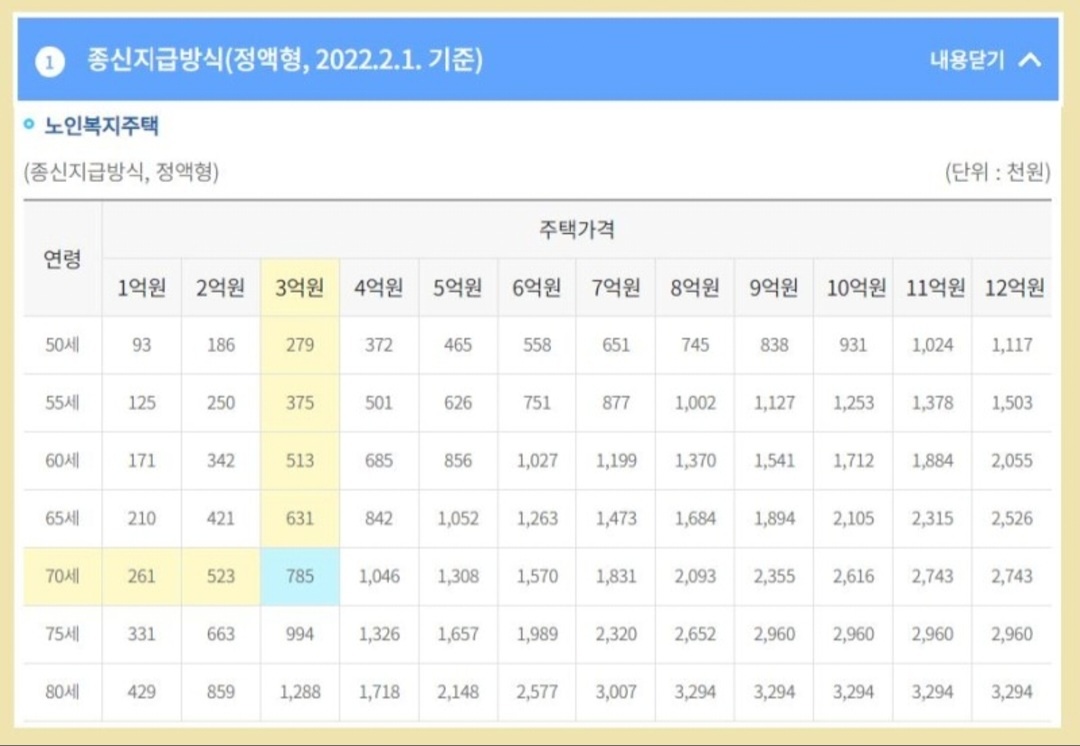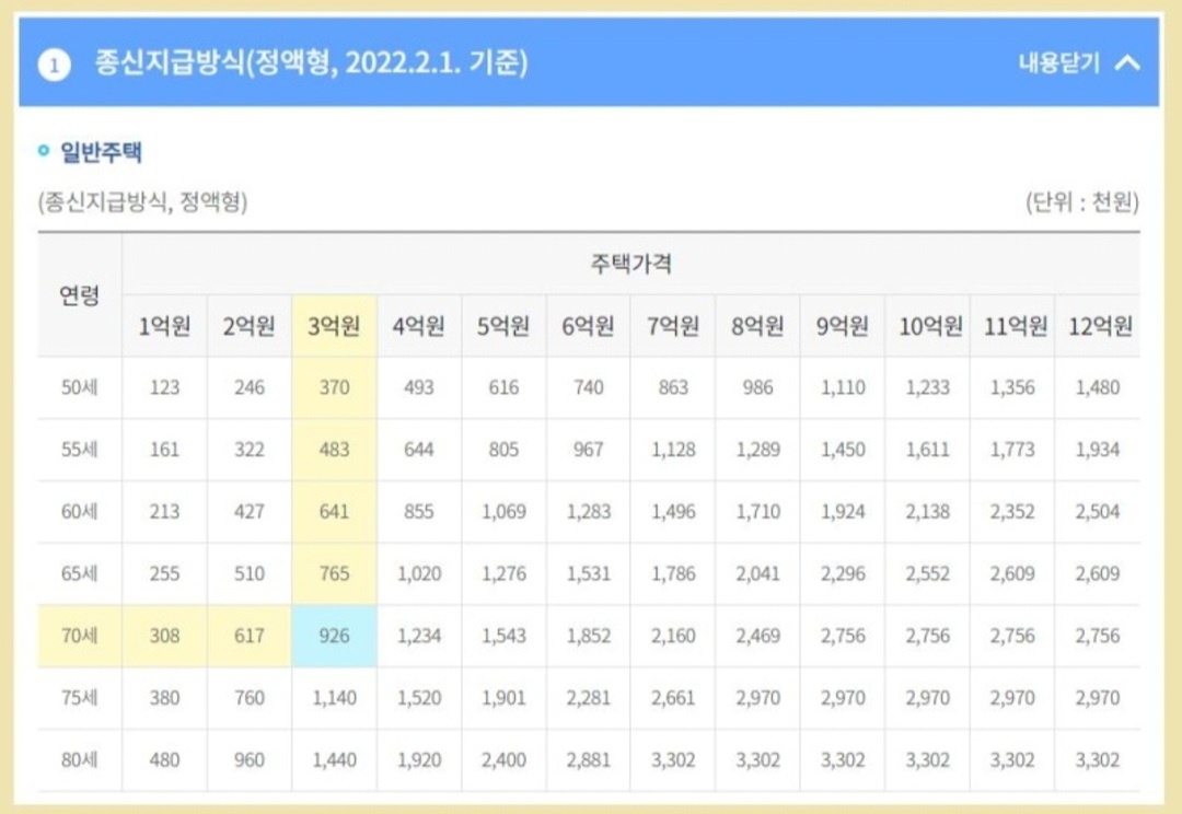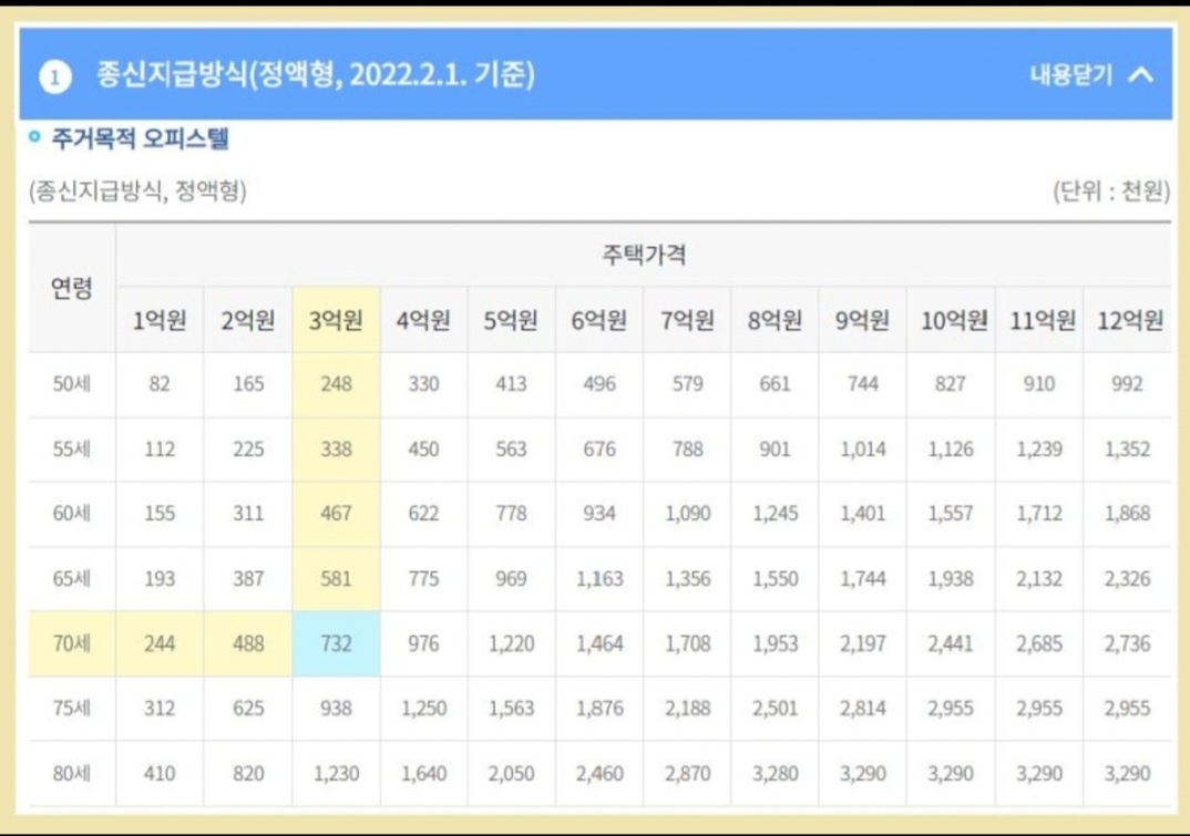 - 대출상환 : 주택담보대출로 일부는 일시에 지급을 하고 남은 일부는 종신형으로 지급한다.