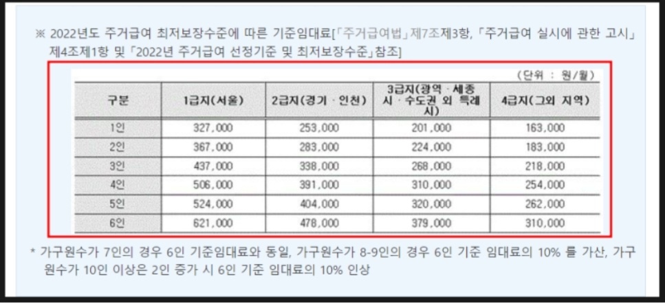1 급지(서울),2 급지(경기, 인천),3 급지(세종, 광역시, 수도권 외 특례시),4 급지에 따라 각 금액이 다릅니다. 예를 들어 서울인 경우 5인이라면 524,000원을 월 지급