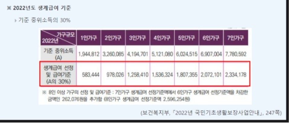 가구원수에 따라 달라질 수 있다. 1인 가구는 583,444원이 기준이고 2인 가구는 978,026원이 기준이다. 지급기준액에서'소득인정액'을 차감한 금액을 급여액으로 받습니다.