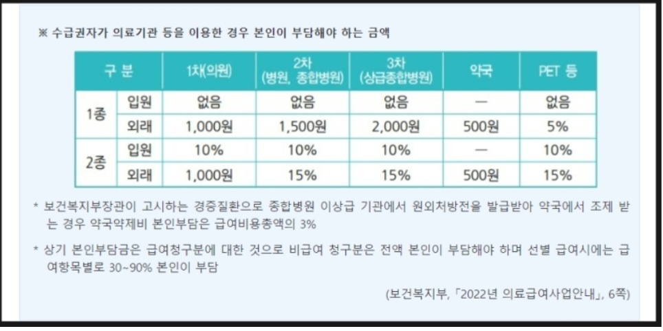 ②외래 :1차 1000원, 2차 1,500원 3차 2,000원 약국 500원