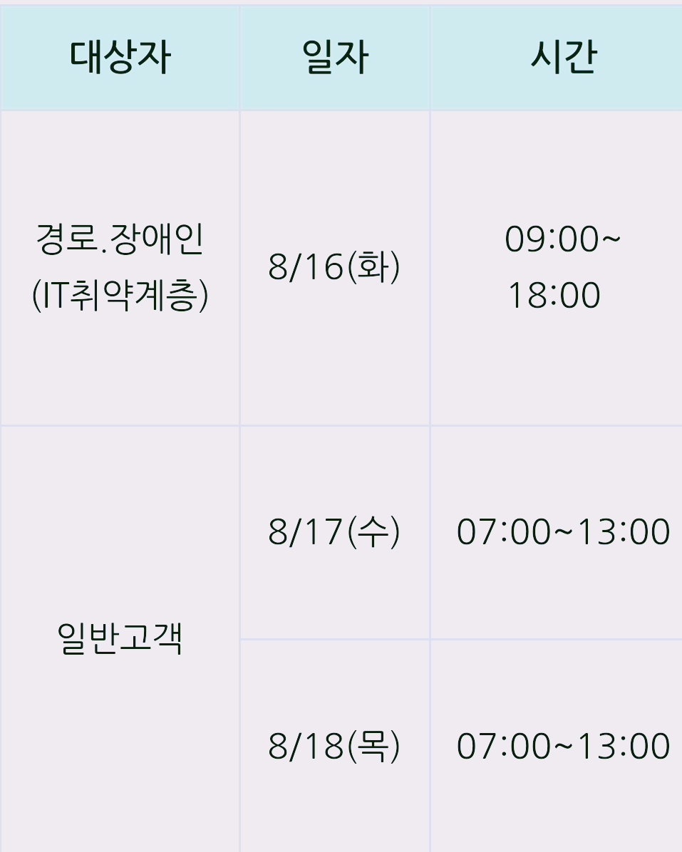 ● 예매 대상 :PC, 모바일 사용이 어려운 경로 (만 65세 이상, 2022년 9월 12일 기준), 장애인 대상